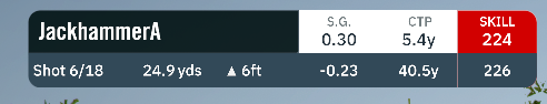 Strokes Gained: As seen before. The total strokes gained after the skills test is complete is then shown on the final scorecard.
