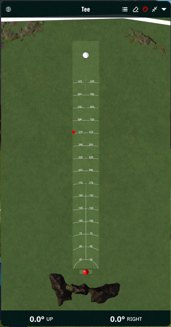 Distance/Offline List: (Only available in the Practice Range) Clicking the small list icon will show the recorded Distance/Offline stats for each shot taken so far on the Practice Range.