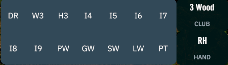 The club selector will represent the club from your bag GSPro believes to be the best utilized from your current position. By clicking the club selector, you’ll be represented with the full list of clubs in your bag you can select. (You can also utilize the keyboard shortcuts I and K to toggle up/down your list of clubs available in your bag.