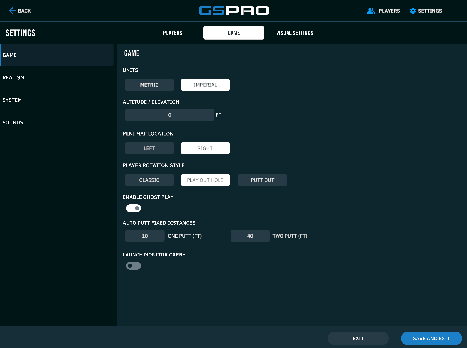 By default Ghost Play is disabled. To enable Ghost Play, head into the GSPro Game Settings and select “Enable Ghost Play”: