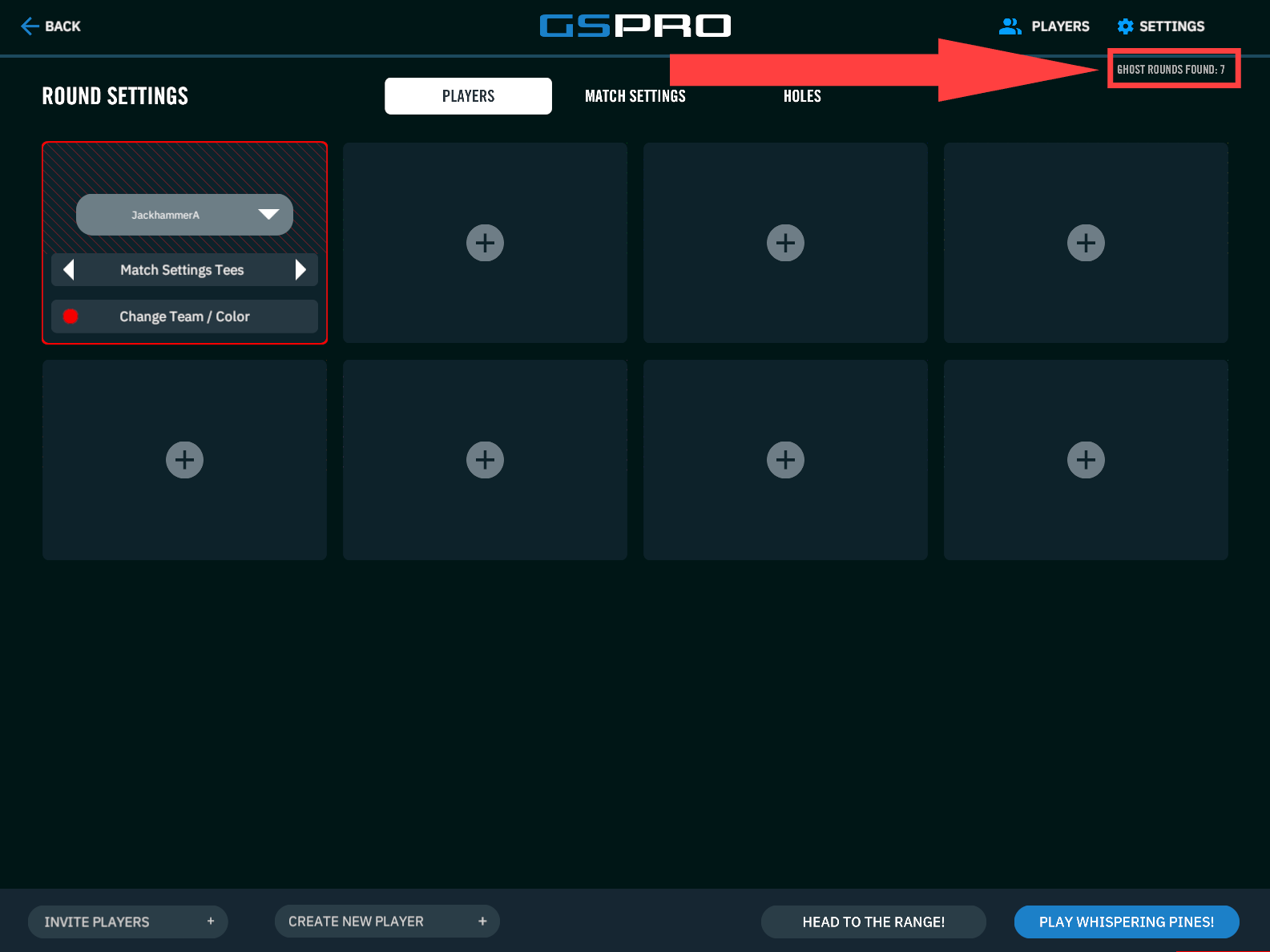 If a course shows valid Ghost Rounds, select a new player tile as if you were adding another local player. You’ll then be able to select the small Ghost icon adjacent to the default “Empty Slot” text. One or more of the five Ghost Rounds will be shown to select from:
