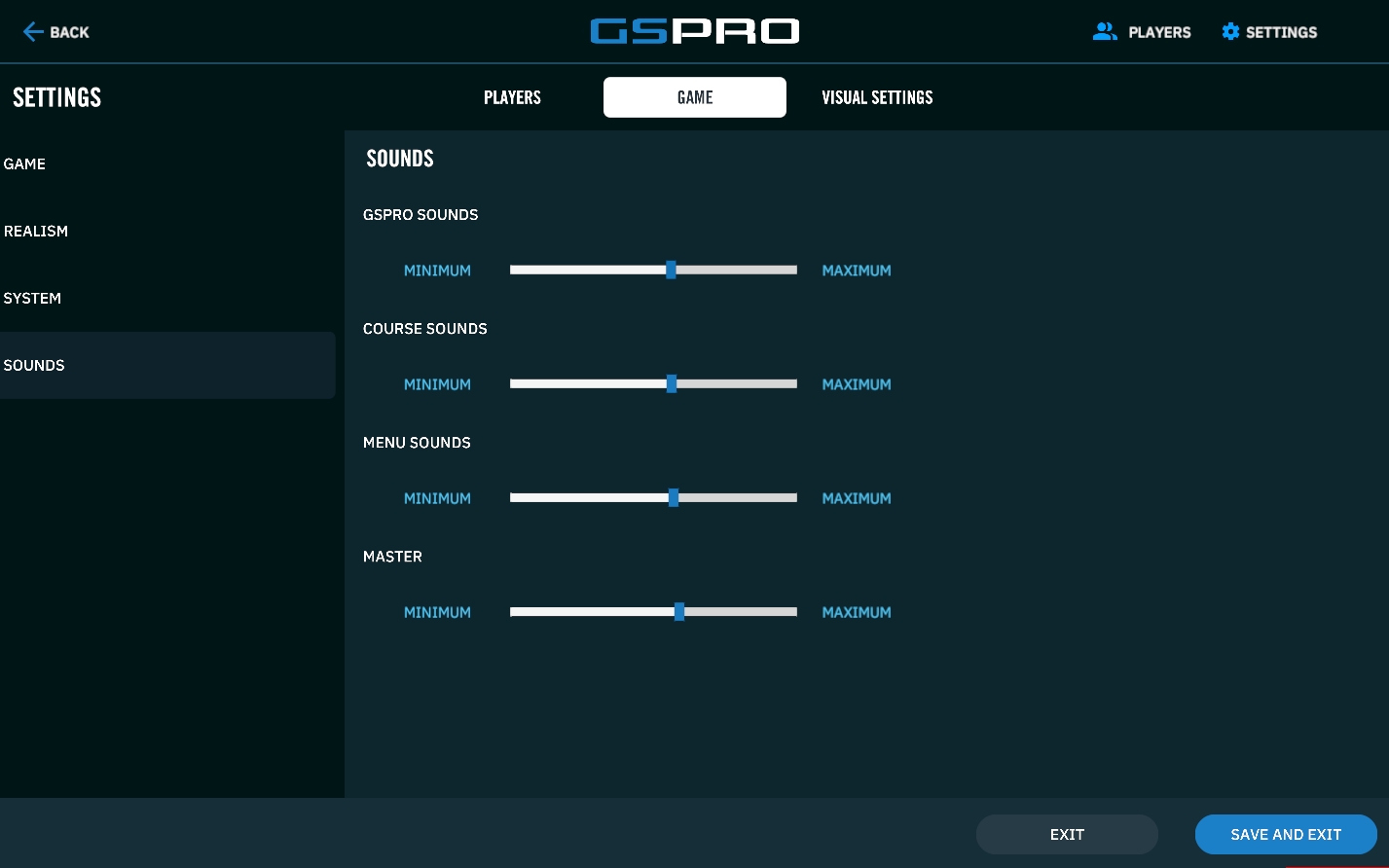 GSPro Sounds: This slider will change the volume of in game sounds such as the ball landing on the ground, the ball falling into the hole, and more sounds included directly in GSPro.