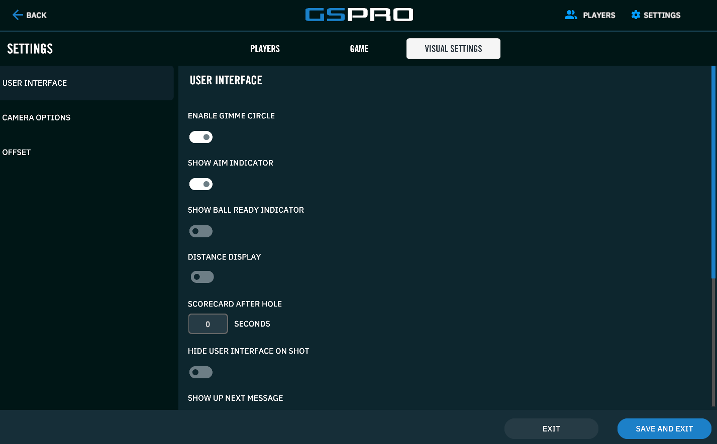 Hide User Interface On Ready: Made available by selecting the above, you can instead force GSPro to hide all UI on screen to indicate that your launch monitor is ready to fire a new shot.