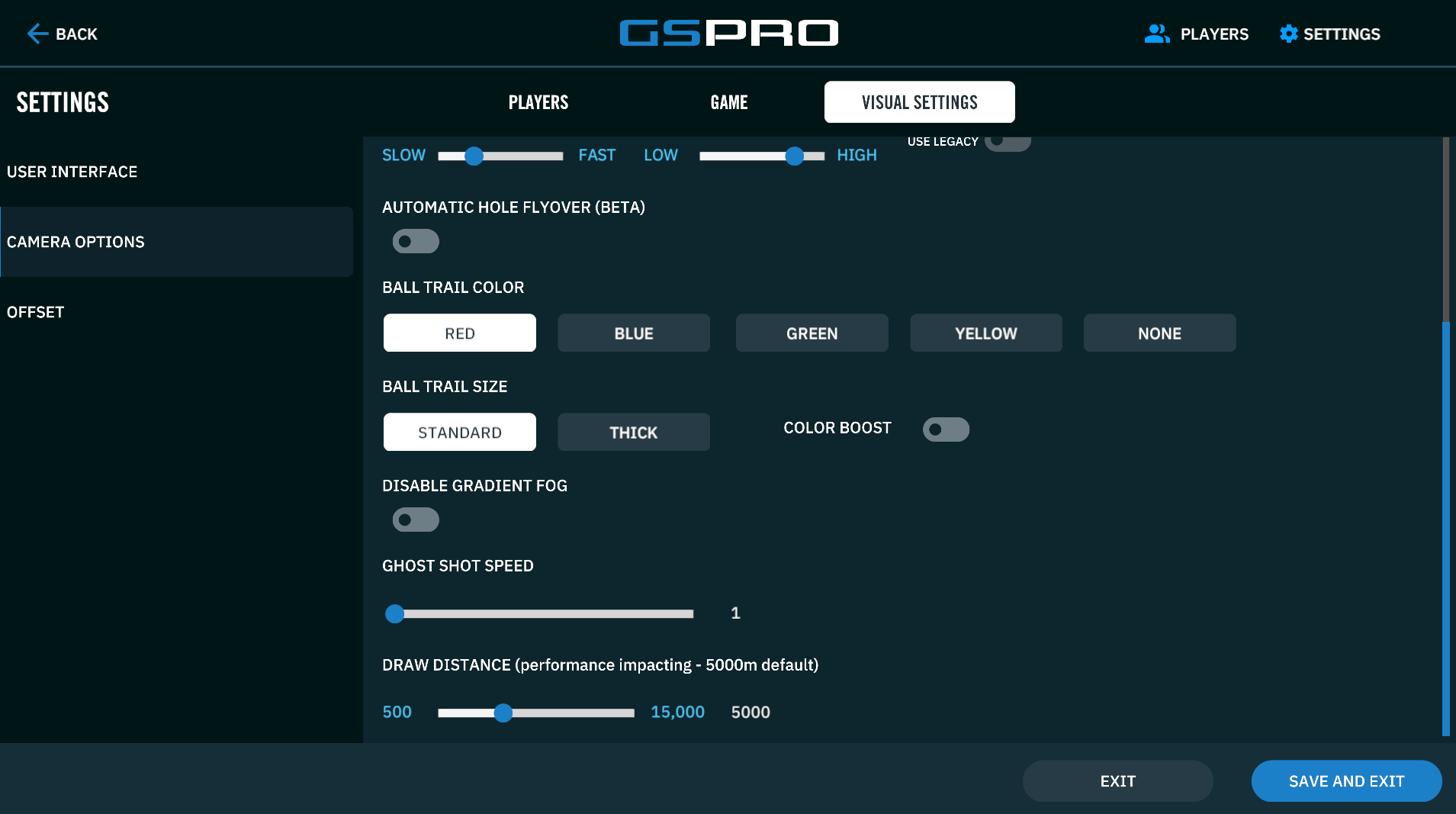Disable Gradient Fog: Some AMD based GPUs can struggle with the gradient fog in GSPro creating white outlines on textures where they shouldn’t be. This will disable the gradient fog, and should help resolve the visual bug.
