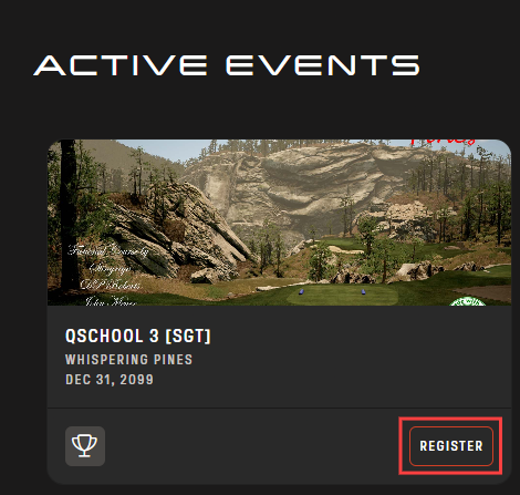 Once you have found the tour you’d wish to take part in, click on it to see if there are any active events open. Active events will allow you to take part by clicking “Register”. (You will not have the option to register if you are not signed in, so be sure to sign into your SGT account: https://simulatorgolftour.com/login)