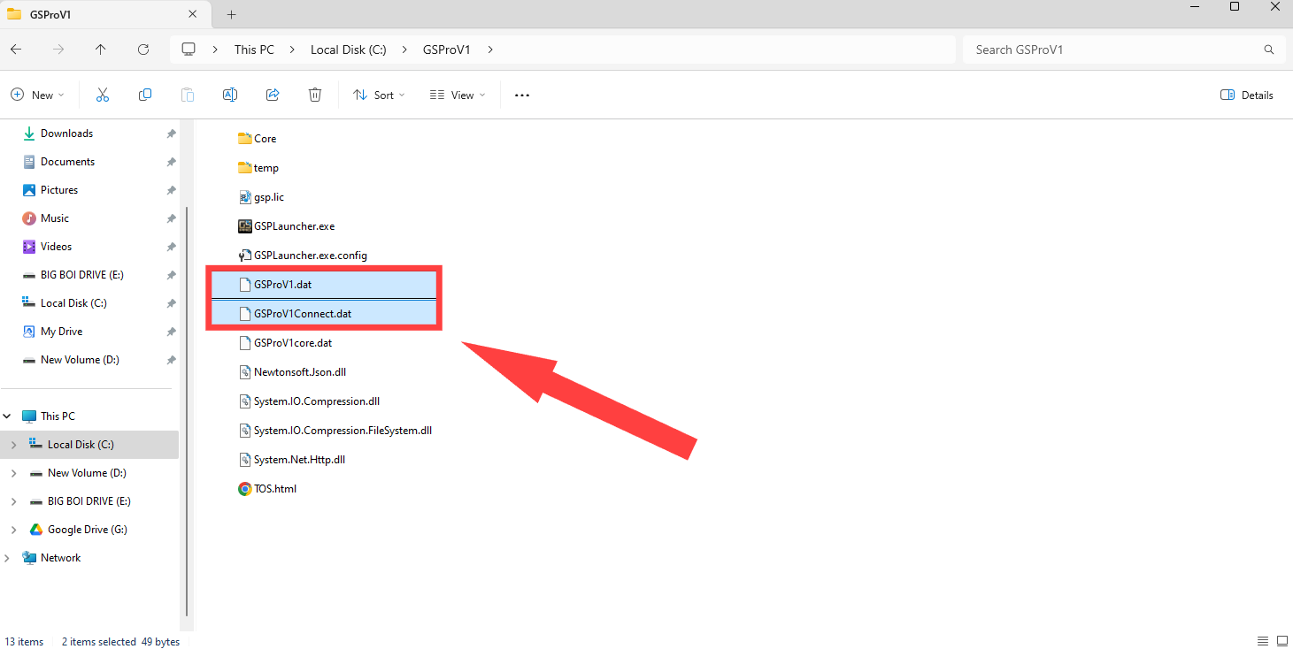 At this point, we will need to delete two files. It’s very important that you make sure to delete only these two specific files. “GSProV1.dat”, and “GSProV1Connect.dat”. Select these two files, and delete them.