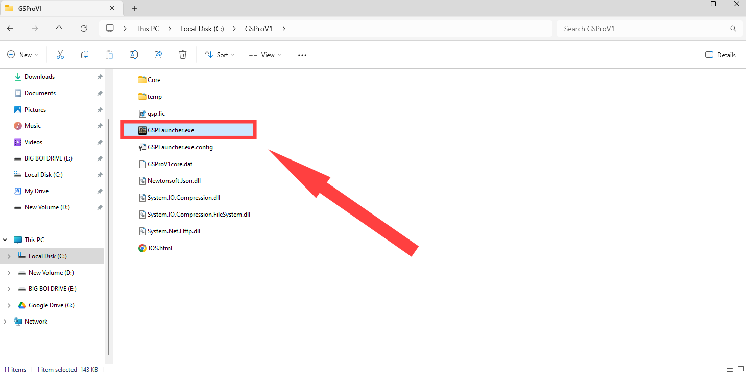 PLEASE NOTE: Do not attempt to launch GSPro from anywhere outside of the folder shown below until all of the steps in this guide are complete, or you may experience unexpected issues.