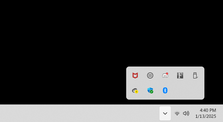 From your desktop, head to the taskbar and “Hidden Icon” arrow as seen below: